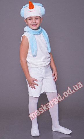 Перша снігова іграшка знайома всім з дитинства, звичайно, сніговик. На голові відро, замість носа - морквина, вічка з вуглинків, рот та брови з гілочок. Костюм м'який, із велюрової тканини. Сучасний сніговик любитель слухати музику, тому в навушниках. Кофта з шарфиком, Короткі штанці.