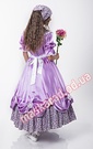 Не просто няня, а французька, що надає образу вишуканості. Може тільки косинка на голові здасться простою. Але яскрава, фіолетового кольору, атласна сукня робить дівчинку дуже ошатною. Сукня з пишними рукавами-ліхтариками, прикрашена кольоровою тканиною та мереживом. Пишна спідниця з оборкою, призбирана донизу, прикрашена квітами з мережива та камінням. Маленький білий фартух з обгорткою з кольорової тканини. Під'юбник надає сукні пишність та обсяг.